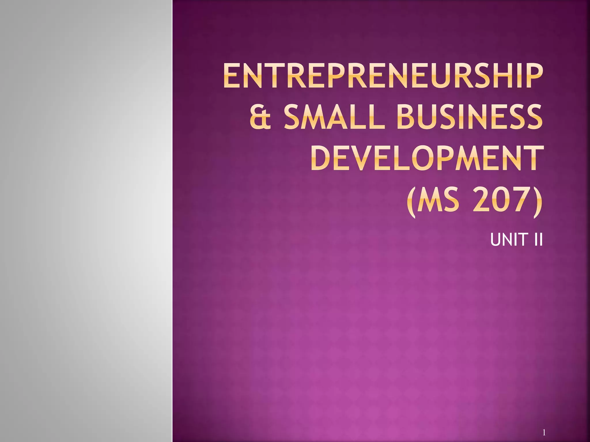 The document outlines the topics to be covered in four units of an entrepreneurship course. Unit II focuses on opportunity identification and product selection. It discusses three key steps: identifying entrepreneurial opportunities through observing trends, solving problems, and finding gaps in the marketplace. When selecting a product, an entrepreneur must consider factors like demand, available funds, raw materials, technical requirements, profitability, qualified personnel, government policies, and how the product fits the company's objectives. Careful product selection is important for business success.