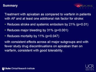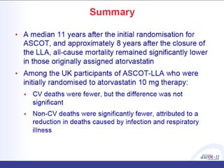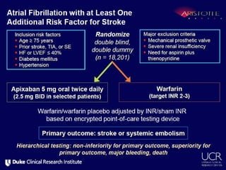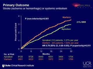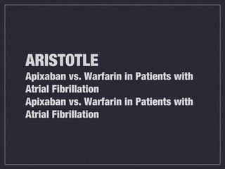 1) Apixaban vs. warfarin for atrial fibrillation patients and the 11-year follow up of the ASCOT lipid-lowering trial.