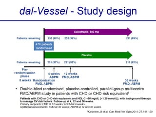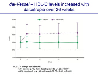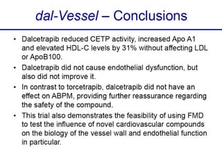 2) The effects and safety of dalcetrapib on vascular function in coronary heart disease patients.