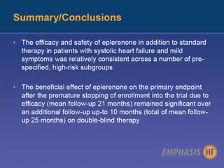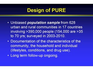 3) The PURE epidemiological study and the effects of eplerenone on heart failure patients.