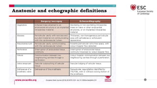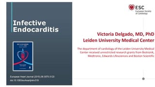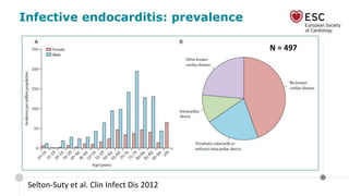 This document discusses infective endocarditis, including its prevalence, mortality rate, prevention, diagnosis, treatment, and timing of intervention. It provides an overview of antibiotic prophylaxis guidelines and limitations. Case examples are presented to demonstrate diagnostic imaging modalities like CT and PET-CT. The importance of an infective endocarditis team approach involving multiple specialties is highlighted. Specific clinical situations that require emergent versus urgent versus elective surgery are also examined.