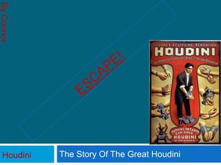 The document provides a summary of Harry Houdini's life and acts of courage through a series of sections: