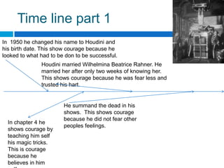 - Houdini changed his name and birthdate to pursue a career in magic, showing courage to succeed (Timeline Part 1)