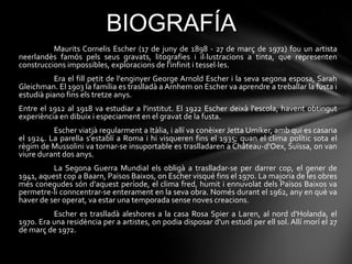 Maurits Cornelis Escher(17 de juny de 1898 - 27 de març de 1972) fou un artista