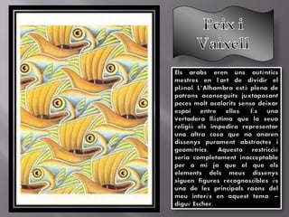 Una visita a l’Alhambra de Granada li va causar tal fascinació per la partició regular de la superfície que mai més va