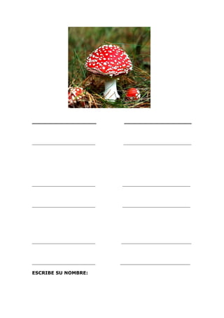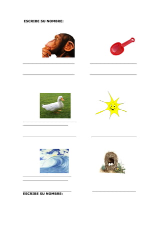 The document contains a form with blank spaces for a person to write their name in both English and Spanish multiple times. The form is repeated with the instruction "ESCRIBE SU NOMBRE" (write your name).