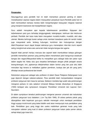 1. Dokumen tersebut membahasakan peranan penting guru dalam mencapai perpaduan kaum dan aspirasi negara.