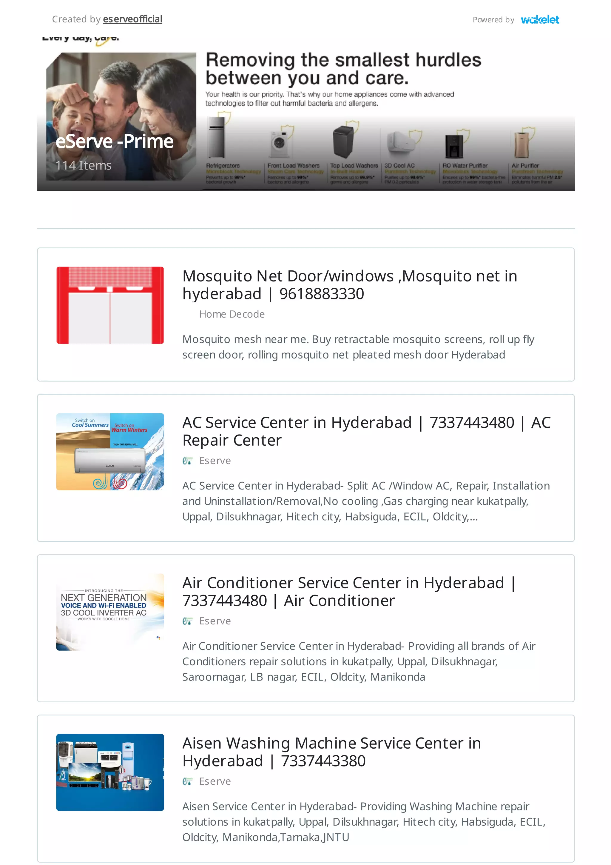 This document contains information about various appliance service centers located in Hyderabad, India. It lists contact details for AC, refrigerator, washing machine, TV, and geyser repair services from brands like LG, Samsung, Godrej, IFB and others. The document encourages customers to contact the centers for any issues with these appliances.