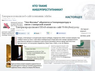 Документ описывает актуальные угрозы информационной безопасности и конкурентные преимущества решений ESET NOD32 против киберпреступников. Он охватывает технологии защиты, такие как алгоритмический анализ и эмуляция, а также возможности централизованного управления и мониторинга для обеспечения безопасности сетей. В заключение, упоминается поддержка различных операционных систем и специальные условия для миграции с похожих продуктов.