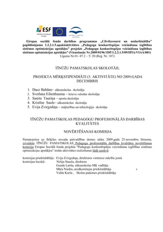 komisija Eiropas Sociālā fonda projekta "Pedagogu konkurētspējas veicināšana izglītības sistēmas