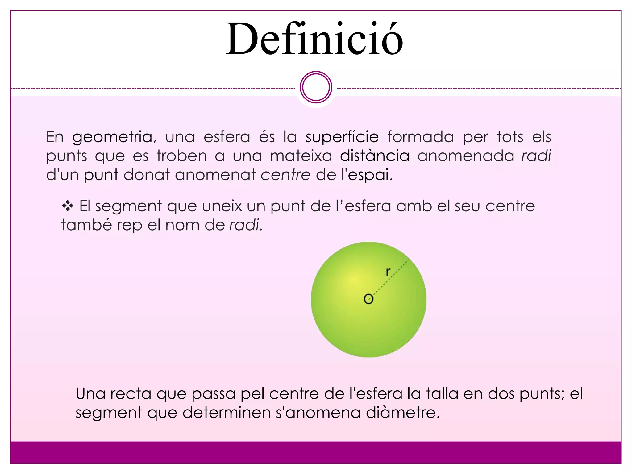 Una recta que passa pel centre de l'esfera la talla en dos punts; el