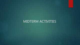 Wilfred submitted a performance task for his MIL (Media and Information Literacy) class consisting of various activities completed over 12 weeks. Some key activities included reflecting on the importance of communication during the pandemic, the positive and negative influences of media, and developing critical thinking skills through media. Wilfred demonstrated an understanding of proper media use and the importance of being media literate to avoid issues like misinformation.