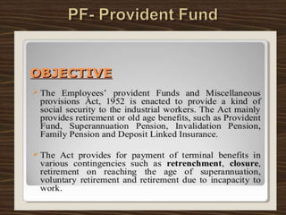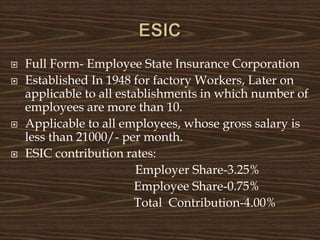 The document discusses the Payment of Gratuity Act which provides for gratuity payments to employees after 5 years of continuous service. Key details include: