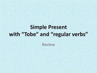 The document reviews the simple present tense in English using common verbs like "to be", "catch", "have", "eat", "play", "get", "wash", "kiss", "drink", and "go". It provides examples of these verbs in the simple present tense followed by their correct conjugated form in parentheses for reference.