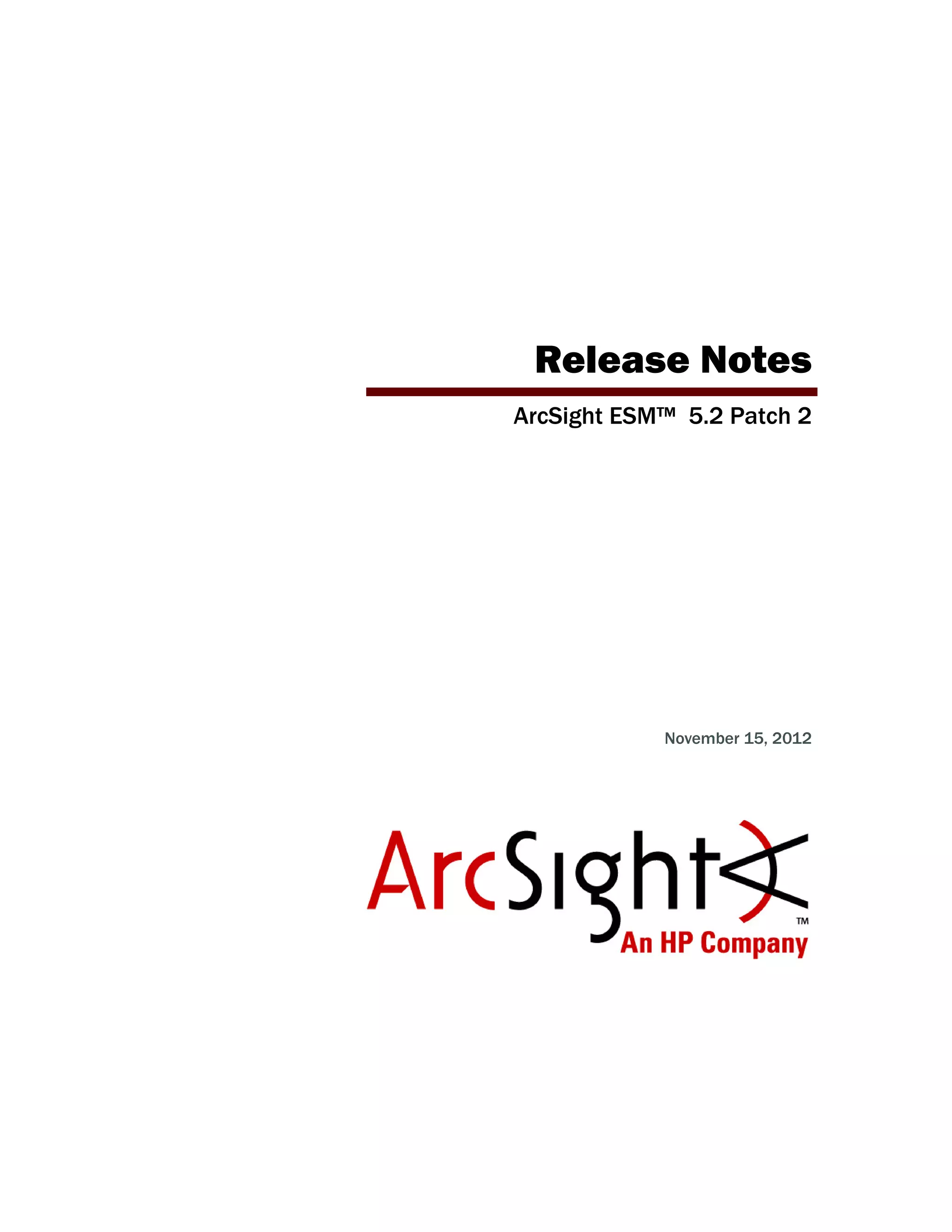 This document provides instructions for installing ArcSight ESM version 5.2 Patch 2. It includes steps for updating the ArcSight Database, ArcSight ESM Manager, ArcSight Console, and ArcSight Web Server components. Details are provided for installation on different platforms. The patch addresses critical issues in ESM v5.2 and provides updates to vulnerability mappings. Users should back up each component before installation and refer to release notes for any usage notes or known issues.