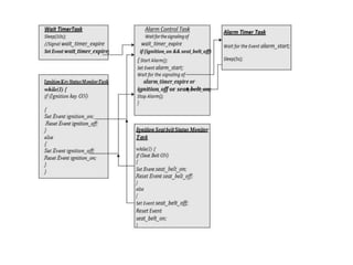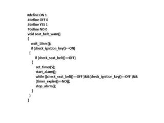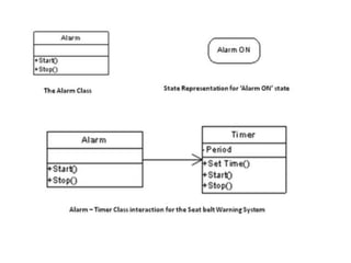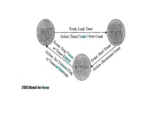 The document discusses various computational models for embedded system design including data flow graph (DFG), control data flow graph (CDFG), state machine, sequential program, and concurrent/communicating process models. It provides examples of modeling requirements like an automatic seat belt warning system using these different models. Key aspects like states, events, actions, transitions, data and control flow, concurrency, and objects are covered in the overview of each model.