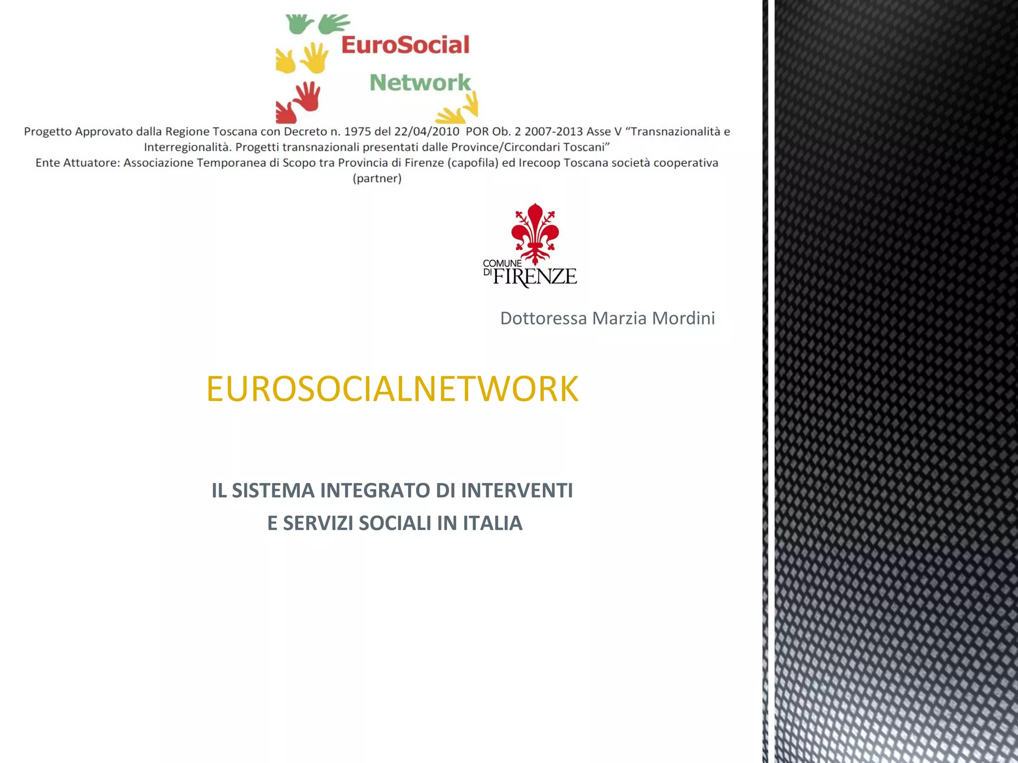 Il documento analizza il sistema integrato di interventi e servizi sociali in Italia, descrivendo le responsabilità di diversi livelli di governo e l'importanza della sussidiarietà nel coinvolgimento delle comunità locali. Viene evidenziato il ruolo cruciale delle famiglie e del terzo settore nella realizzazione delle politiche sociali, con un focus su servizi per minori, anziani, e persone con disabilità. Infine, sottolinea la necessità di integrazione tra politiche sociali e sanitarie per garantire un supporto globale ai cittadini.
