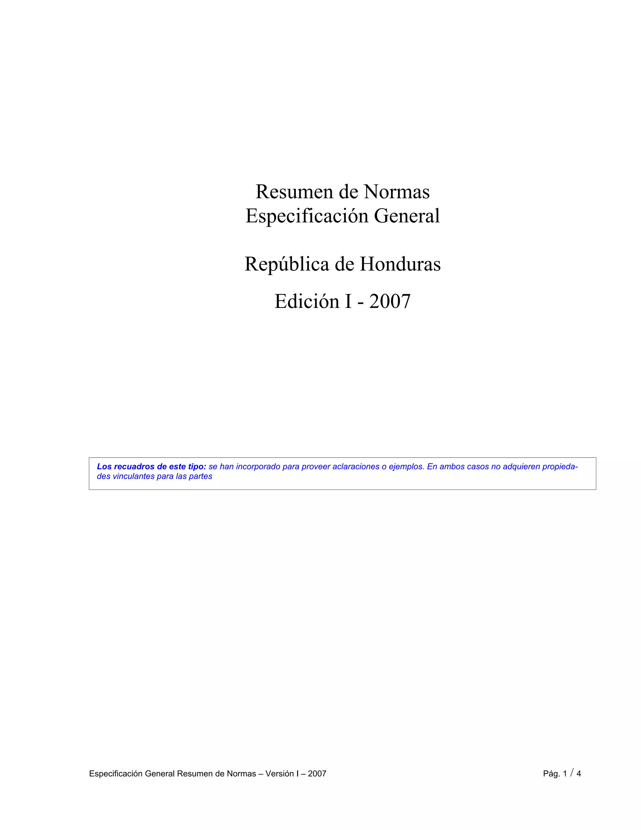 Especificación General Resumende Normas – Versión I – 2007 Pág. 1 / 4