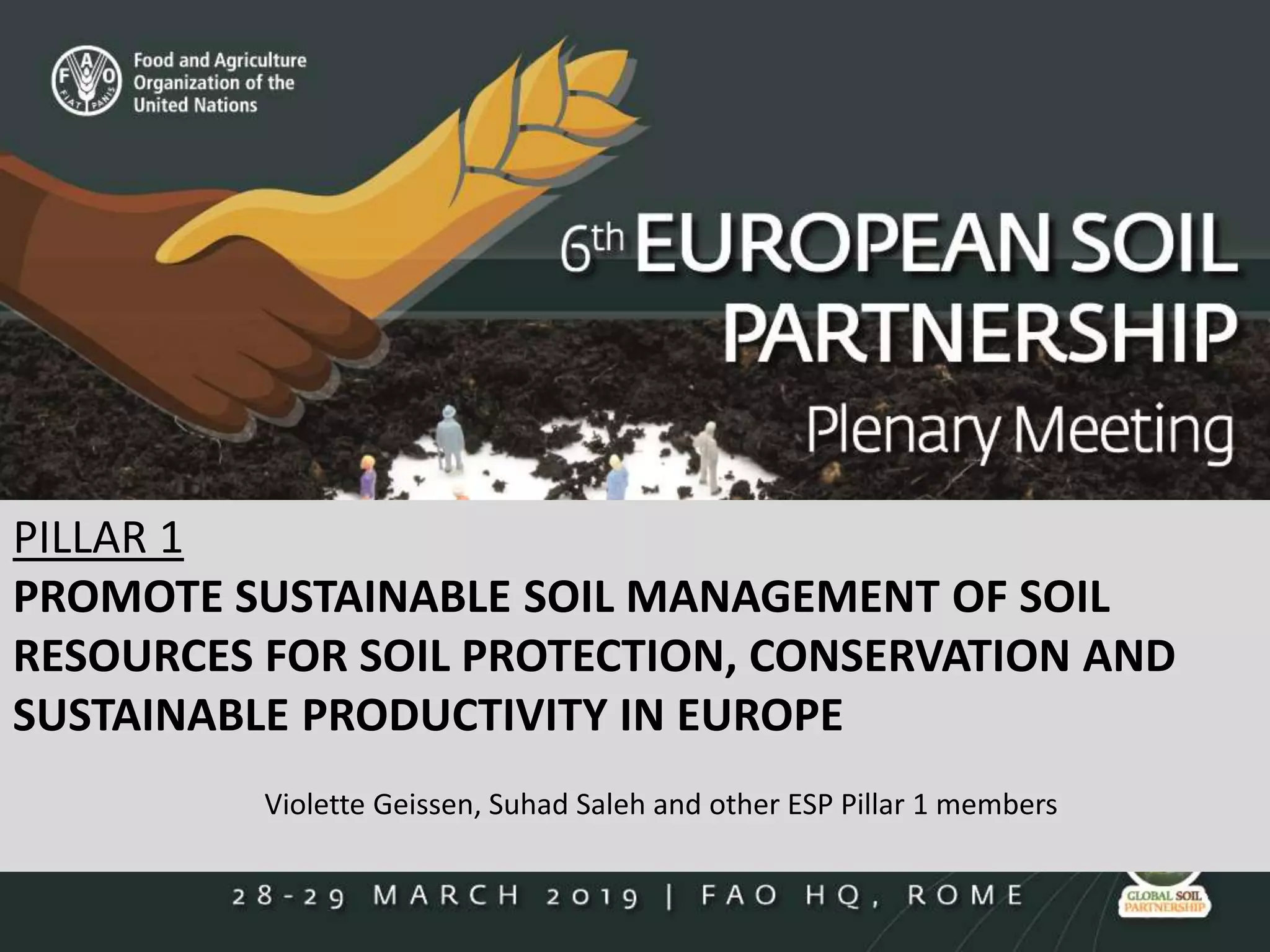 The document outlines recommendations for promoting sustainable soil management (SSM) in Europe, focusing on practices, monitoring systems, and stakeholder engagement. Key actions include identifying sustainable practices for various land uses, supporting balanced soil fertility in agriculture, and developing a capacity-building strategy. The document emphasizes collaboration among stakeholders and the importance of evaluating long-term effects of SSM practices.