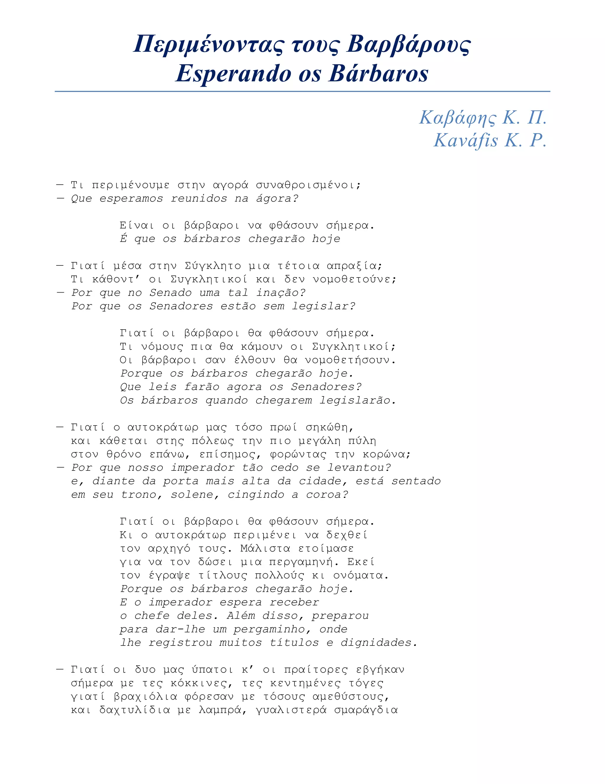 — Και τώρα τι θα γένουμε χωρίς βαρβάρους.