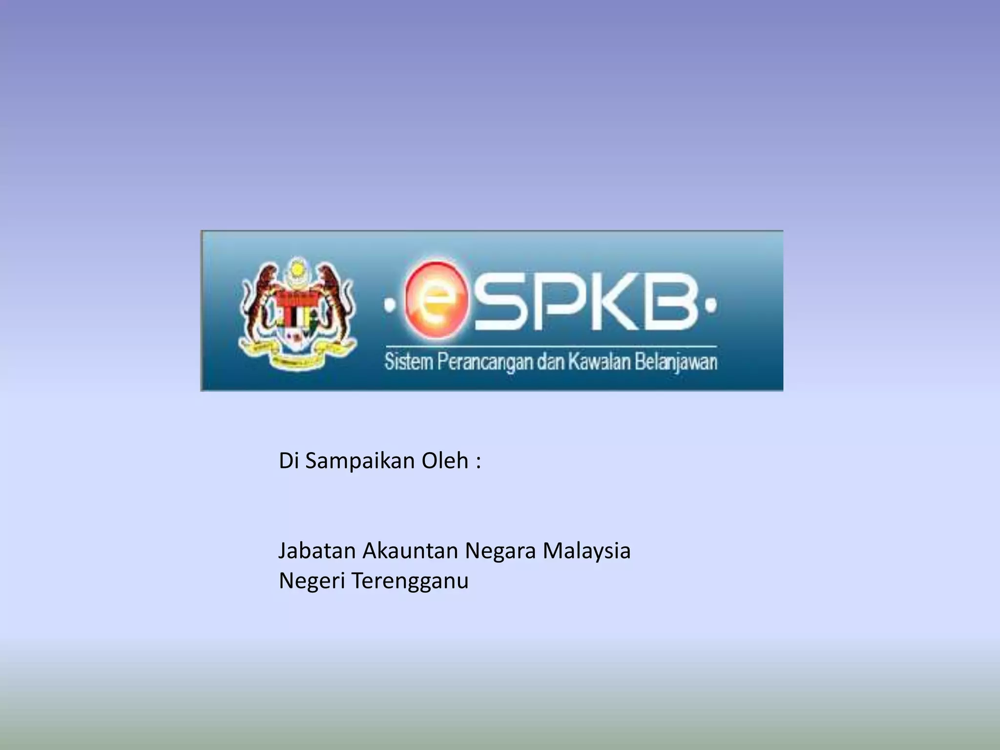Dokumen ini memberikan taklimat mengenai sistem eSPKB (sistem perancang dan kawalan belanjawan elektronik) yang merupakan sistem perakaunan belanjawan kerajaan secara elektronik. Ia menjelaskan sejarah, ciri-ciri, faedah dan pelaksanaan sistem eSPKB serta penambahbaikan yang dilakukan untuk meningkatkan sistem tersebut.