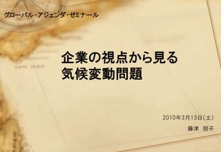 企業の視点から見る 気候変動問題 2010年3月13日(土) 藤津 朊子