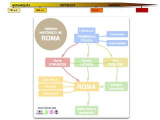 Il documento presenta una cronologia della storia antica riguardante i periodi della monarchia, repubblica e impero, evidenziando le date chiave: 753 a.C. per l'inizio della monarchia, 509 a.C. per l'inizio della repubblica, 27 a.C. per l'inizio dell'impero e 476 d.C. per la caduta dell'impero romano. Le stesse informazioni vengono ripetute più volte, ma la sostanza rimane centrata sugli eventi storici fondamentali.