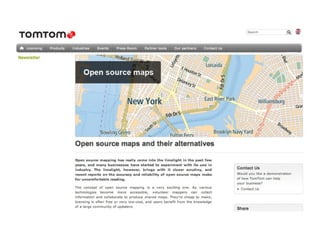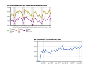 1) OpenStreetMap is a user-generated map where volunteers collect data using tools like GPS devices and aerial imagery. Data includes roads, buildings, and points of interest.