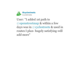 This document summarizes an OpenStreetMap presentation. It discusses: