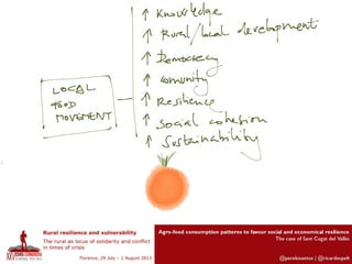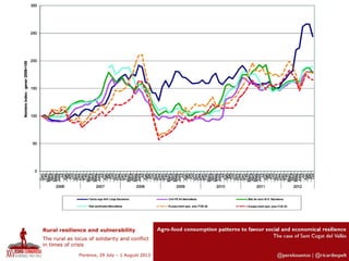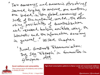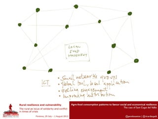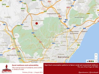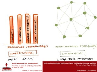 This document discusses integrated policies and design for urban-rural areas to promote social and economic resilience through agro-food consumption patterns. It focuses on the case study of Sant Cugat del Vallès and examines the value chain marketing vision of ICT compared to ICT possibilities among local stakeholders. Figures 4 and 5 are presented, with Figure 4 showing where ICT is used in different cases and Figure 5 showing the relation between cases and the origin of their products.