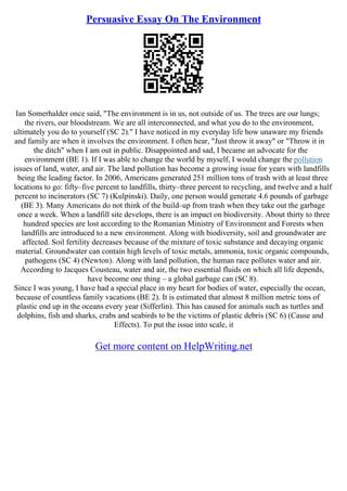 This essay discusses the principles of environmental ethics, highlighting the moral relationships between humans and the environment. It addresses significant environmental issues such as global warming, pollution, and biodiversity loss, emphasizing the impact of human actions on ecological systems. The paper calls for social obligations to protect the environment for future generations and advocates for sustainable practices to mitigate environmental degradation.
