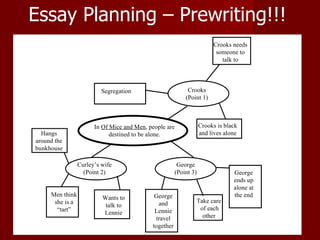 Steinbeck uses characters in Of Mice and Men to show that societal conditions during the Great Depression caused people to feel alone. Crooks is segregated as a black man and lives alone. Curley's wife married for security but receives no attention, leaving her lonely. Though George and Lennie have each other, their friendship is doomed due to Lennie's interactions with others.