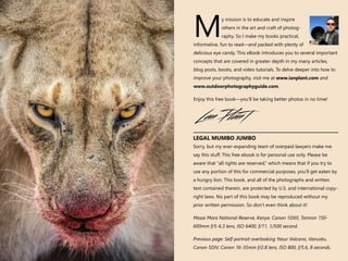 This document is an eBook by Ian Plant that educates readers on photography techniques to enhance creativity and improve skills. It covers essential concepts, creative lessons, and techniques while emphasizing the importance of perspective, composition, and the interplay of light and shadow in photography. The eBook is offered for personal use only and contains copyright information regarding its content.