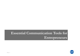 The document outlines essential communication tools for entrepreneurs, emphasizing the importance of effective documentation such as elevator pitches, executive summaries, white papers, PowerPoint presentations, and detailed business plans. It discusses how these tools help convey a business's unique value proposition, solicit investments, and communicate with various stakeholders, all while stressing the need for clarity and audience awareness. Additionally, it provides guidance on structuring these documents and tailoring messages to specific audiences to engage potential investors and partners effectively.