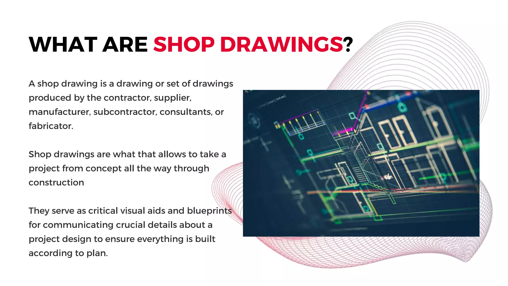 Shop drawings are detailed visual aids created by various stakeholders in a construction project that serve to communicate crucial design details, reduce errors, and enhance accuracy and efficiency. Essential elements to include in shop drawings are parts and components, measurements, material specifications, assembly instructions, welding details, thread types, labeling, safety warnings, quality checkpoints, and approval stamps. These drawings are vital for ensuring that construction projects are executed correctly and safely, minimizing delays and rework.