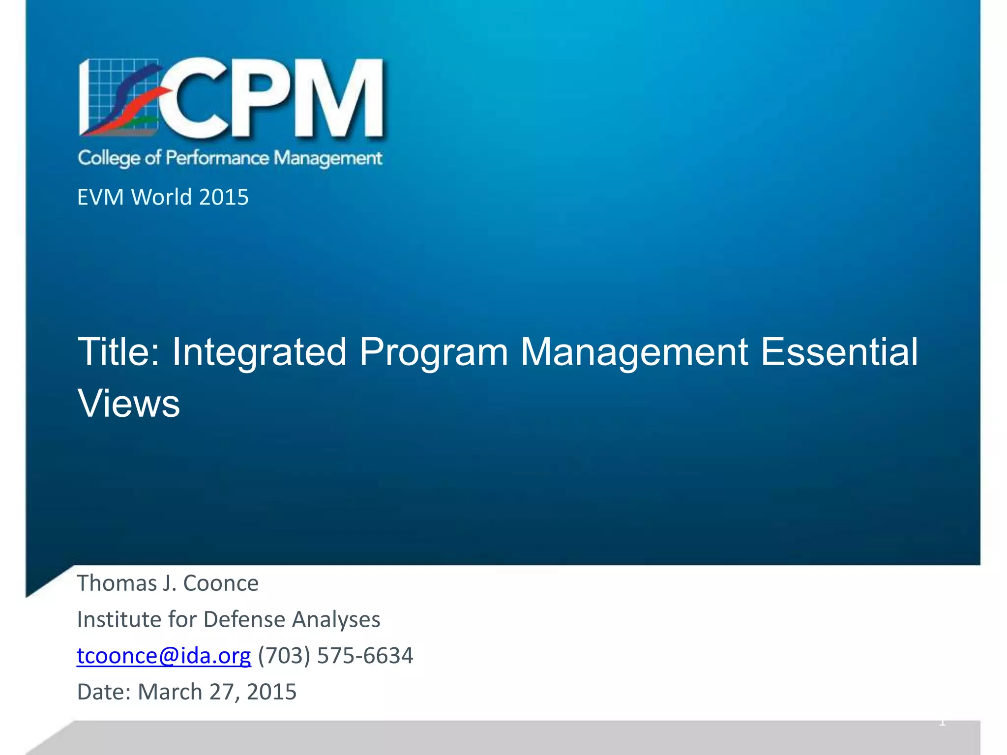 The document discusses proposed integrated program management metrics and views that would be valuable for government program managers. It outlines 26 proposed metrics across 3 categories: