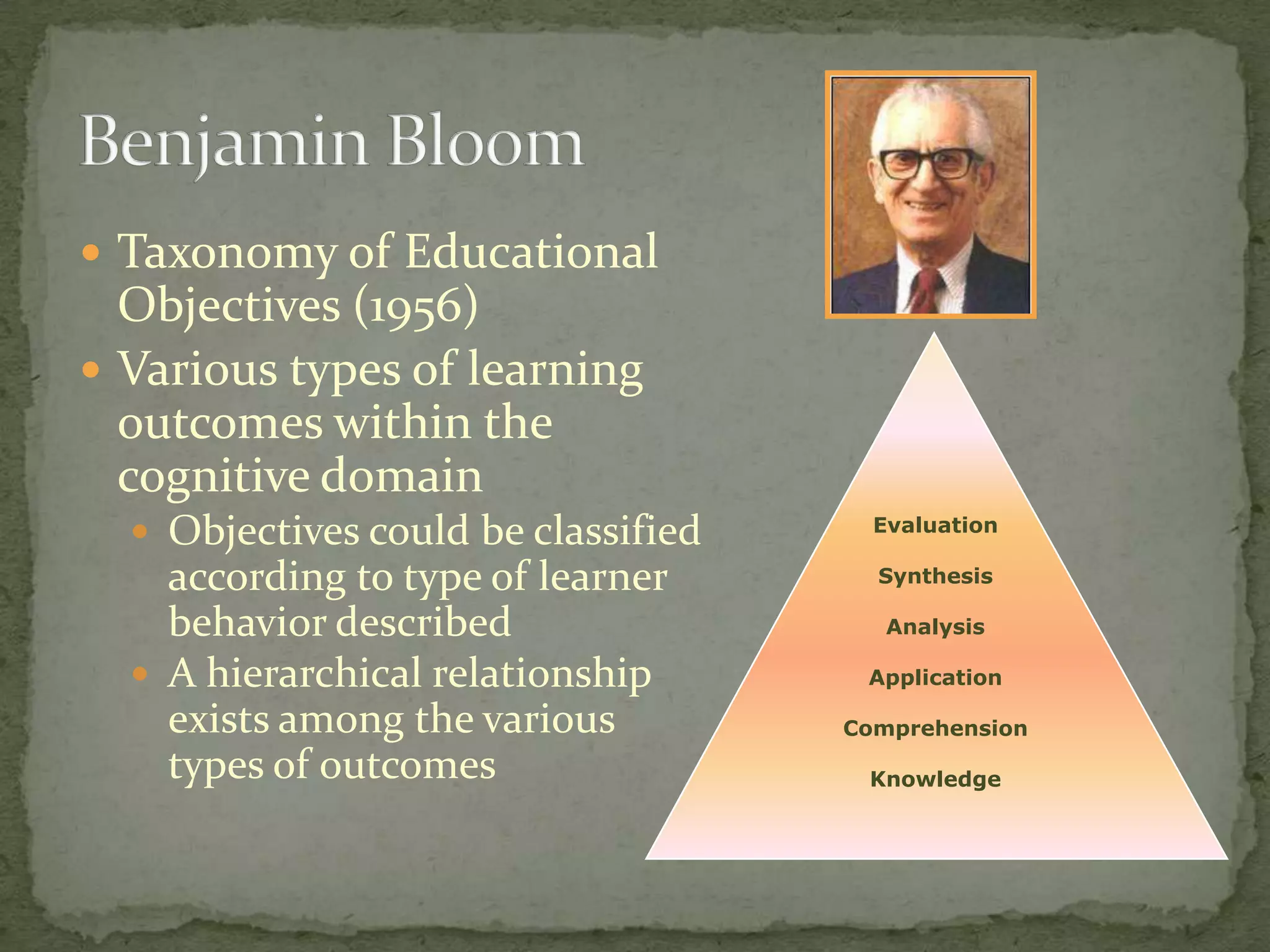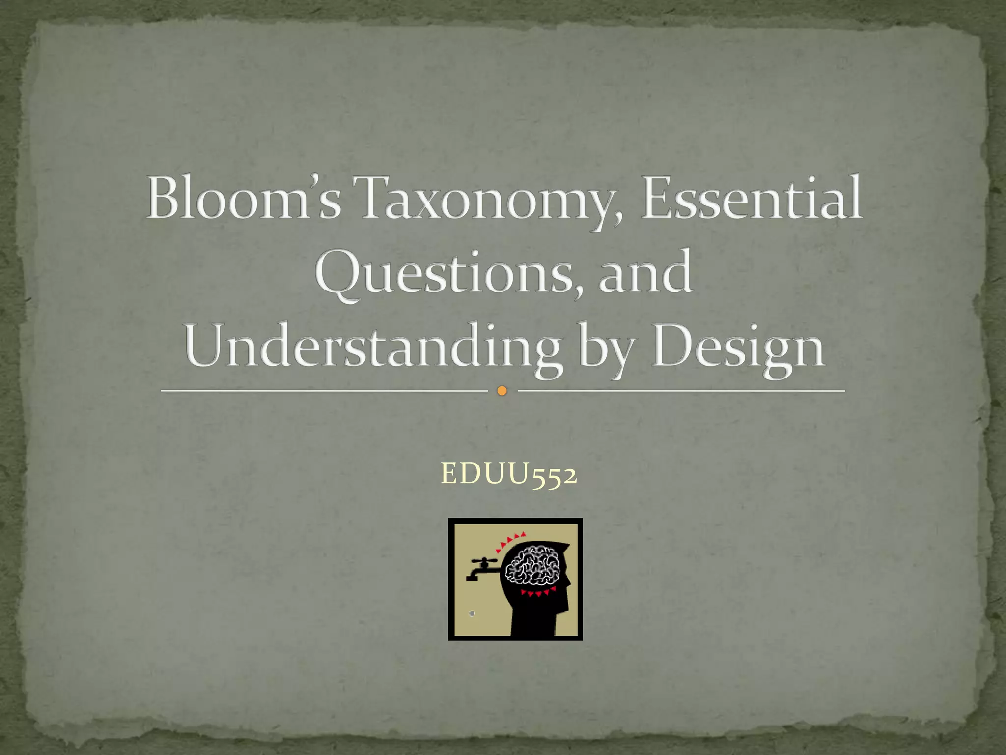 This document discusses Bloom's Taxonomy and its revision, which categorizes different types of learning objectives from simple recall to evaluation. It also discusses essential questions, which spark curiosity and require students to construct their own answers. Finally, it explains Understanding by Design, an instructional framework that begins with identifying desired learning outcomes and designing assessments to measure student understanding.