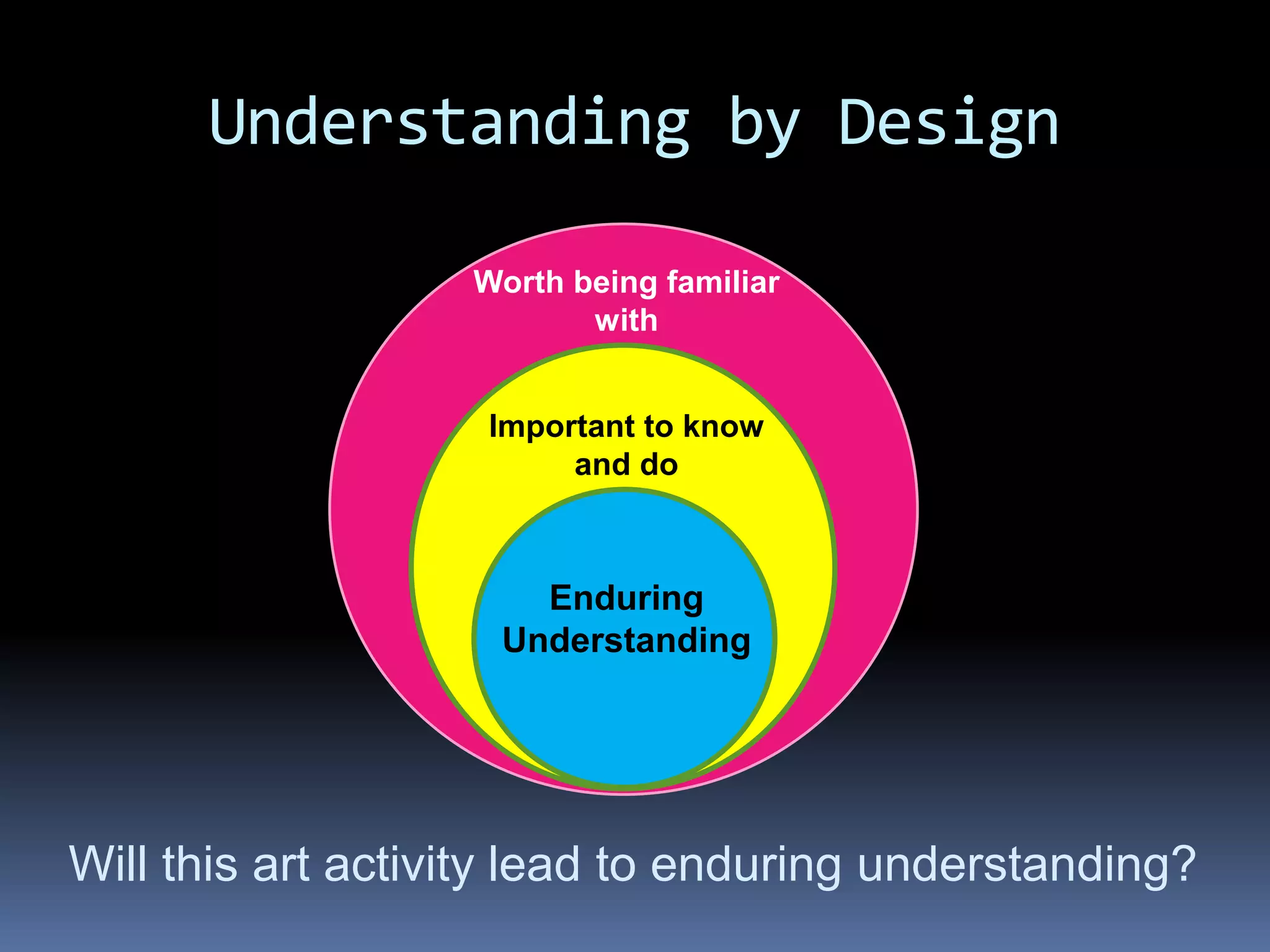 This document provides information on essential questions and enduring understandings for visual arts education. It discusses how essential questions spark curiosity about important ideas that have no single answer. Enduring understandings represent big ideas in a discipline that have value beyond the classroom. The document provides examples of essential questions for visual arts and discusses how to plan arts lessons to result in enduring understandings. It also outlines the California Visual Arts Standards and includes enduring understandings and essential questions for each standard.