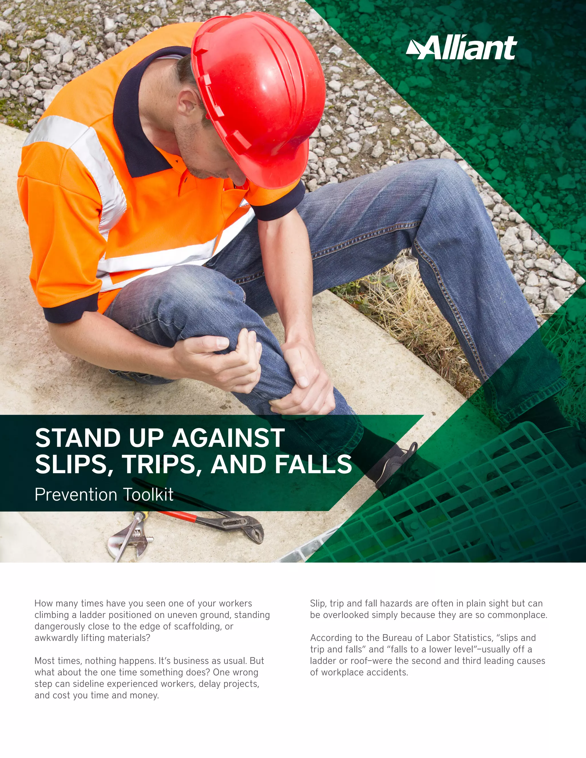 This document discusses the dangers of slips, trips, and falls in the workplace, highlighting prevention strategies such as proper training, use of tools, and creating a safety culture. It provides specific guidelines for safe ladder use, eliminating clutter, and moving heavy objects to minimize these hazards. Statistics emphasize the severity of these incidents and the importance of addressing them to safeguard employees and improve business outcomes.