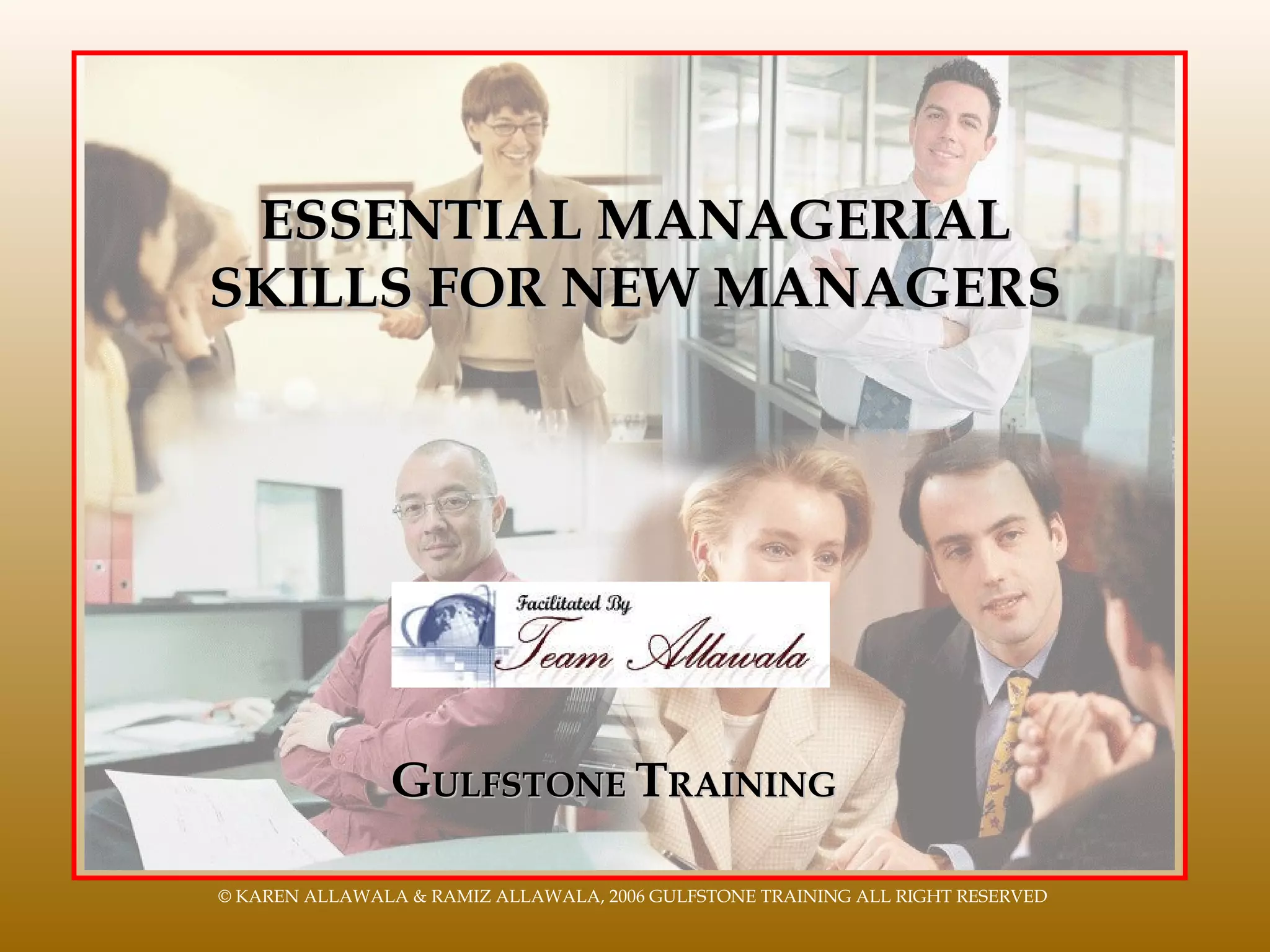 This document outlines essential managerial skills for new managers. It discusses 7 key behaviors for managers including knowing your people and business, insisting on realism, setting clear goals and objectives, following through, rewarding doers, expanding people's capabilities, and knowing yourself. It also provides tips for communication, handling conflicts, building credibility with your team, and common management mistakes to avoid.