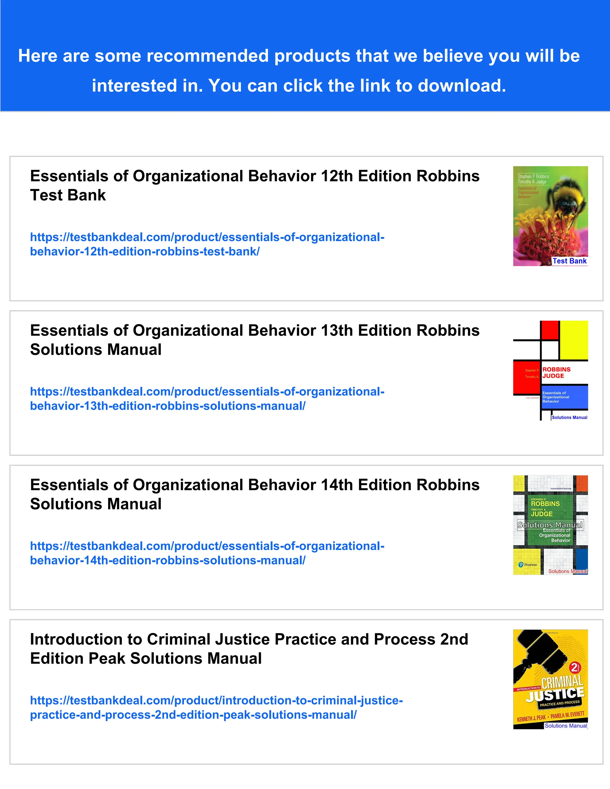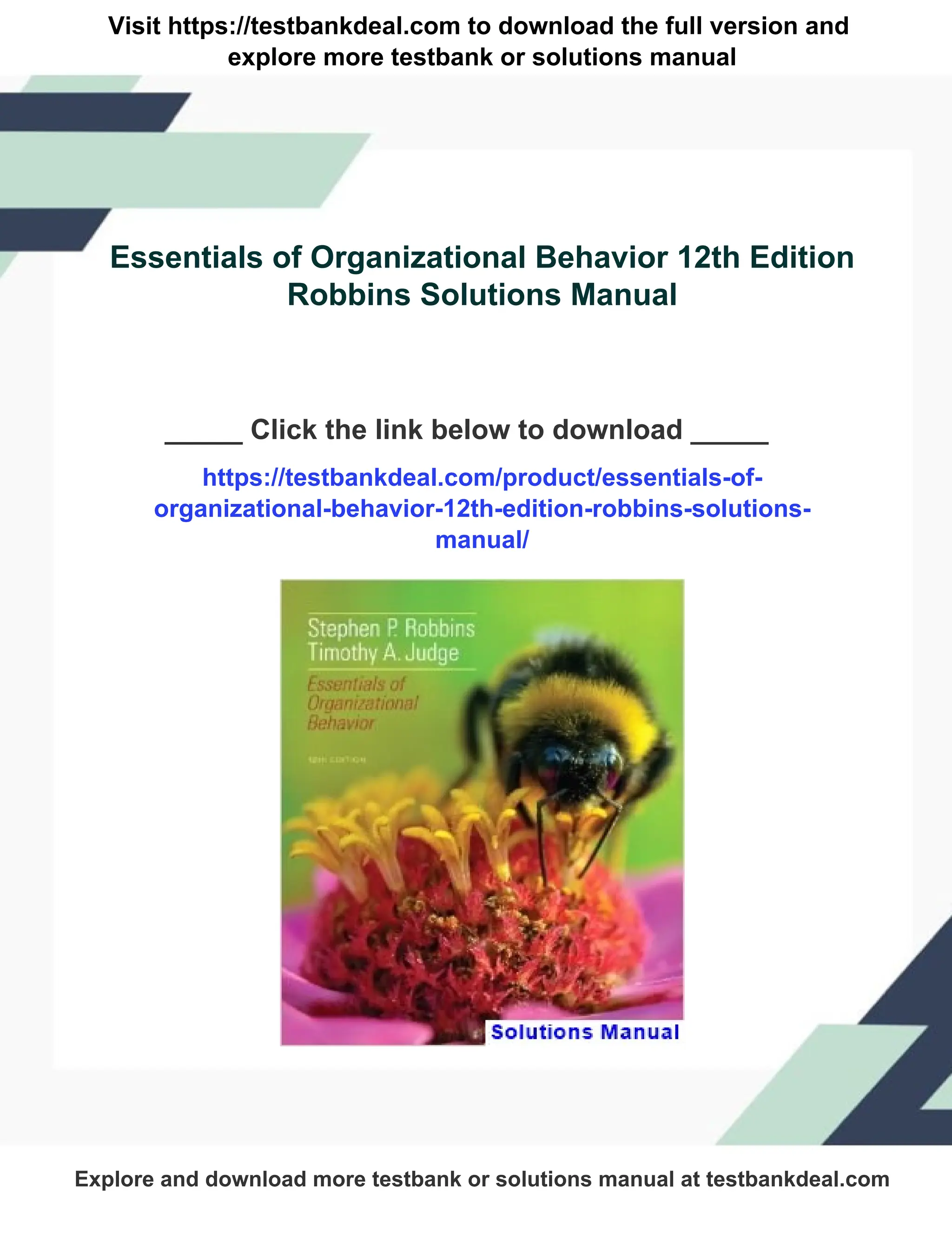 Essentials of Organizational Behavior 12th Edition Robbins Solutions Manual