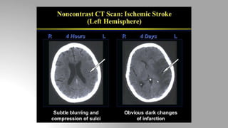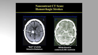This document provides an overview of cranial computed tomography (CT) for medical undergraduates, detailing its principles, mechanism, advantages over MRI, and various clinical applications including head trauma, cerebrovascular accidents, and CNS infections. Key concepts such as the Hounsfield unit, different window levels for brain imaging, and anatomical structures visible in CT scans are discussed. It emphasizes the critical role of CT in emergency medicine, particularly for assessing neurological conditions.