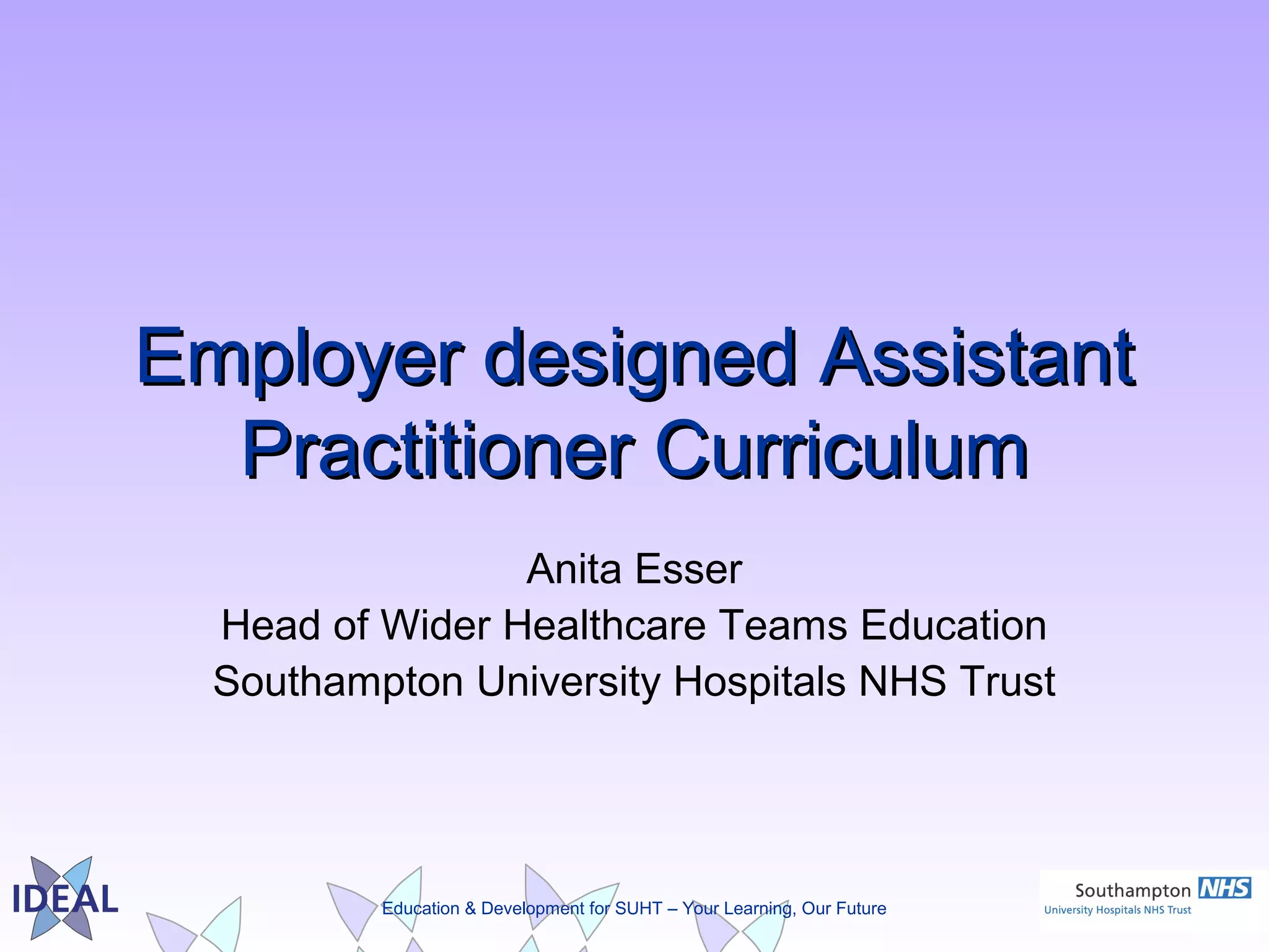 This document discusses the development of an assistant practitioner curriculum at Southampton University Hospitals NHS Trust. It notes the need for assistant practitioners to address modernizing careers, demographics, public finances, and building on existing support roles. It provides information on the current nursing workforce breakdown and examples of assistant practitioner roles. It discusses lessons learned from establishing senior healthcare assistants and proposes a career pathway model from Band 1 to Band 5. The document recommends a Foundation Degree in Health and Social Care through a partnership with Southampton Solent University to formalize training and support career progression for support staff. It outlines the proposed shape of the Foundation Degree and notes the library support that will be provided to students who are also employees.