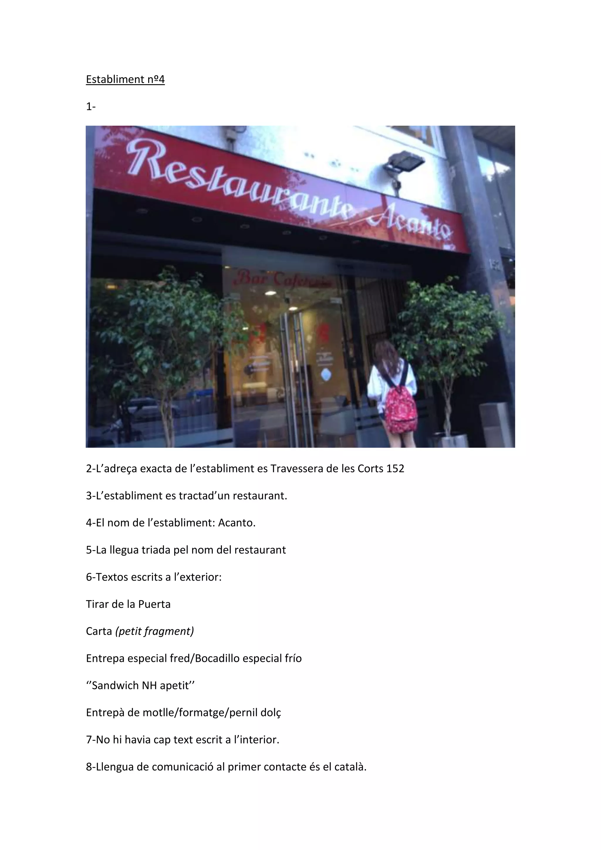 4-El nom de l’establiment: Acanto.