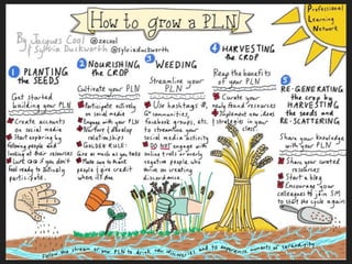 The document discusses the concept of Personal Learning Networks (PLNs), emphasizing their importance in facilitating online engagement and knowledge sharing among individuals, particularly in the medical field. It outlines how to build and effectively use a PLN, highlights the role of social media in curation and community building, and mentions the benefits of Twitter-based journal clubs for evidence-based discussions. Various quotes from experts and references to additional resources are provided to underline the significance and functionality of PLNs.