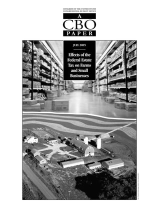 The federal estate tax may affect family farms and small businesses by requiring the sale of some of these assets to pay taxes when the owner dies. However, the evidence is limited. Currently, estates over $1.5 million face taxes of 43-47% on assets above that threshold. By 2009, the threshold will rise to $3.5 million and the rate will fall to 45%. Fewer than 2% of estates actually pay the tax. While the tax may lower returns from investment, its actual effects on entrepreneur behavior are unclear given varying motivations. The tax can be reduced through business valuation discounts, deductions, and installment payments in some cases.