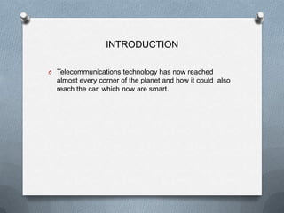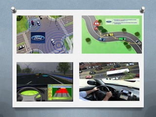 Ford is the first automaker to build prototype smart vehicles that are equipped with communication systems and Wi-Fi to allow 360 degree detection of risks. Ford is testing these smart vehicles across the country to analyze benefits like fuel efficiency, safety, and using Wi-Fi and GPS technology to potentially improve traffic and prevent minor accidents. The document concludes that vehicles may soon function like mobile devices that constantly exchange information to help reduce travel time and improve fuel economy.