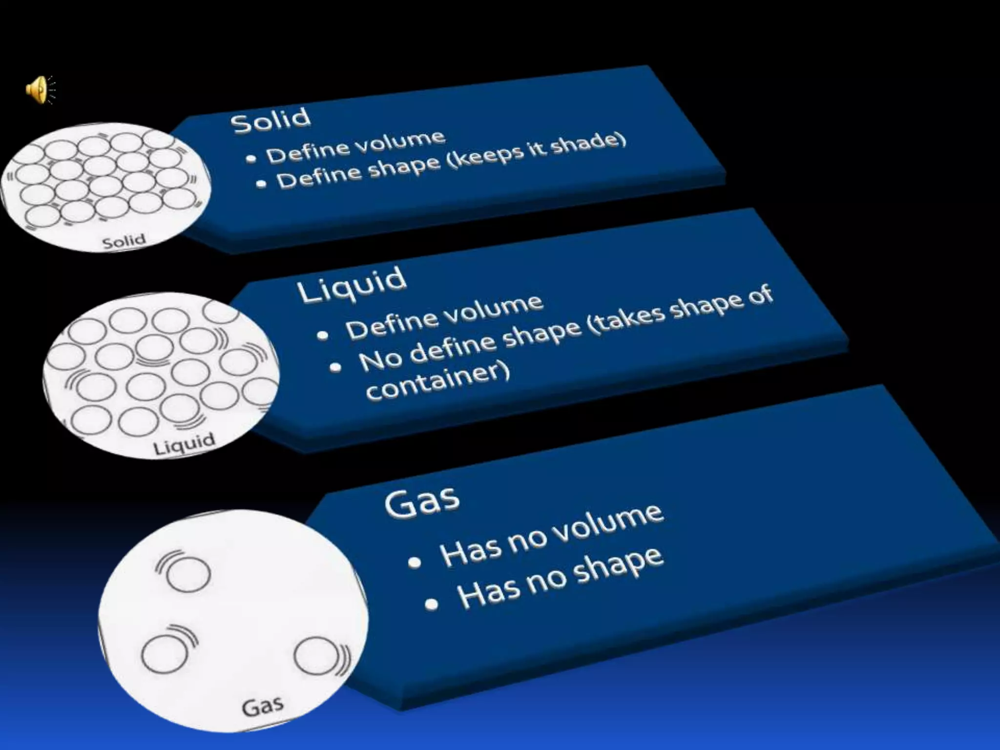 This document discusses the three common states of matter - solid, liquid, and gas. It provides properties and examples for each state. Solids have a definite volume and shape, liquids have a definite volume but no shape, and gases have no definite volume or shape. The strength of intermolecular forces determines if a substance is a solid, liquid or gas, with solids having the strongest forces and gases the weakest. A phase change, such as melting or boiling, occurs when heating or cooling provides enough energy for molecules to overcome these intermolecular forces.