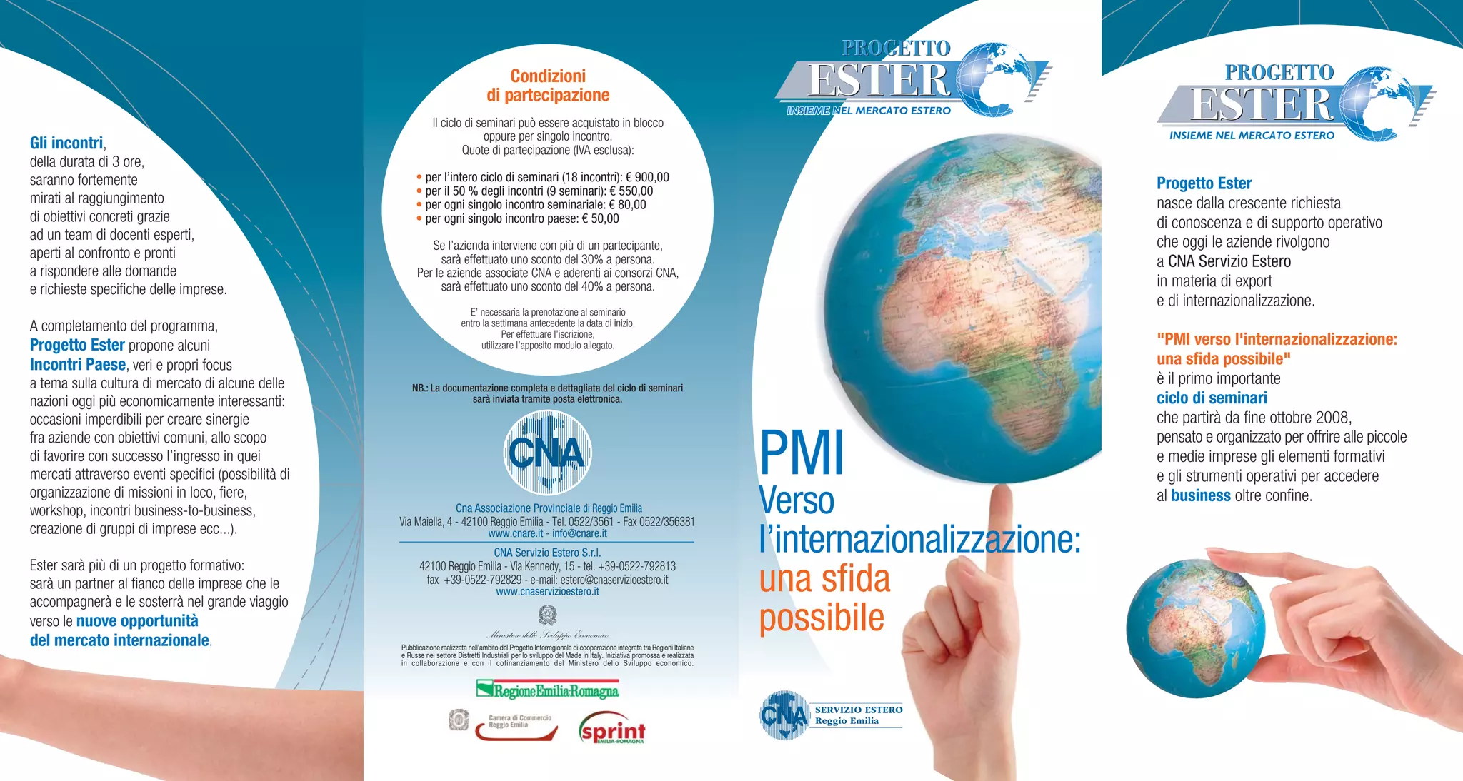 Il documento descrive un ciclo di seminari dedicati all'internazionalizzazione delle piccole e medie imprese, con informazioni su quote di partecipazione e modalità d'iscrizione. Questi seminari, che iniziano a fine ottobre 2008, sono progettati per fornire conoscenze pratiche e operative sul commercio internazionale. Gli incontri affronteranno vari temi, da aspetti doganali a strategie di ingresso nei mercati esteri, coinvolgendo esperti del settore.