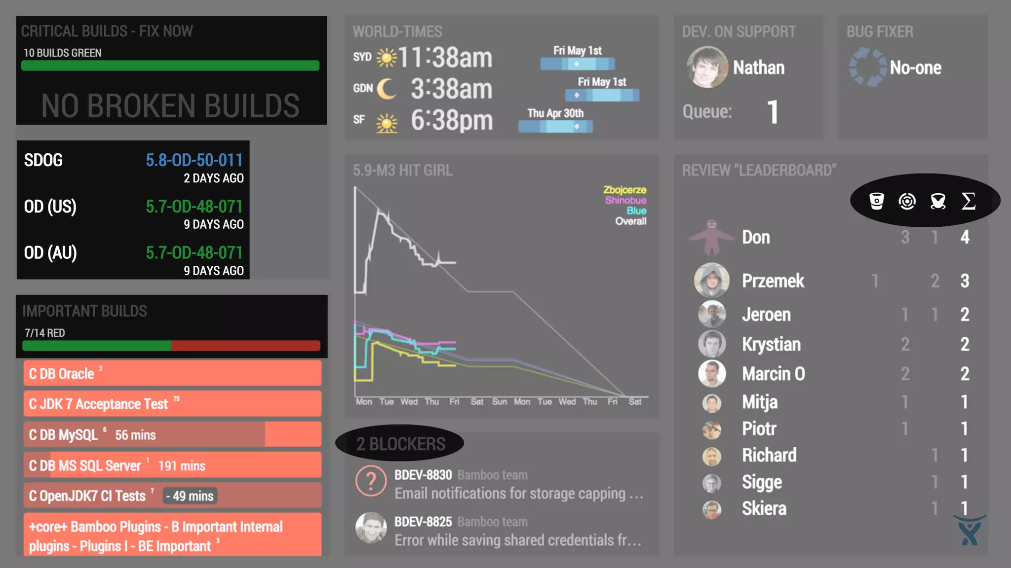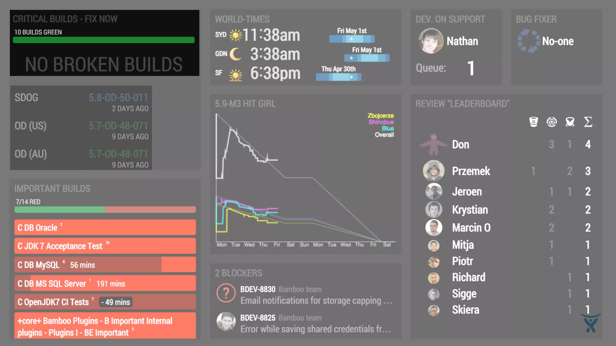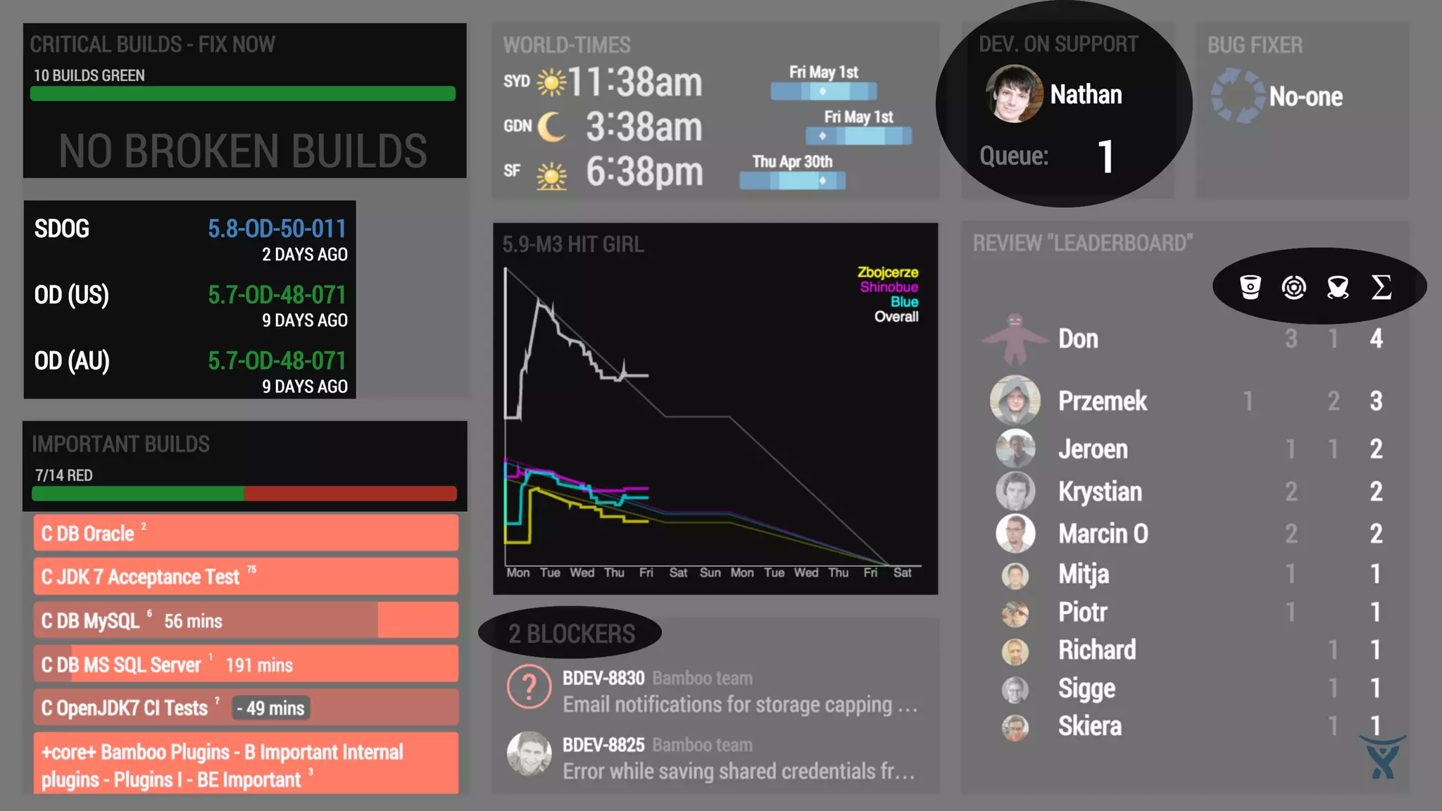This document provides an overview of continuous integration (CI) practices at Atlassian, a software company. It discusses Atlassian's large build infrastructure that includes 11 Bamboo instances, 900 elastic agents, and over 20,000 build plans. It also describes some of the challenges of implementing CI at a large company, such as long test suites, plugin development, and integrating cloud services. The document emphasizes that CI requires changes to both processes and culture in order to be successful.
